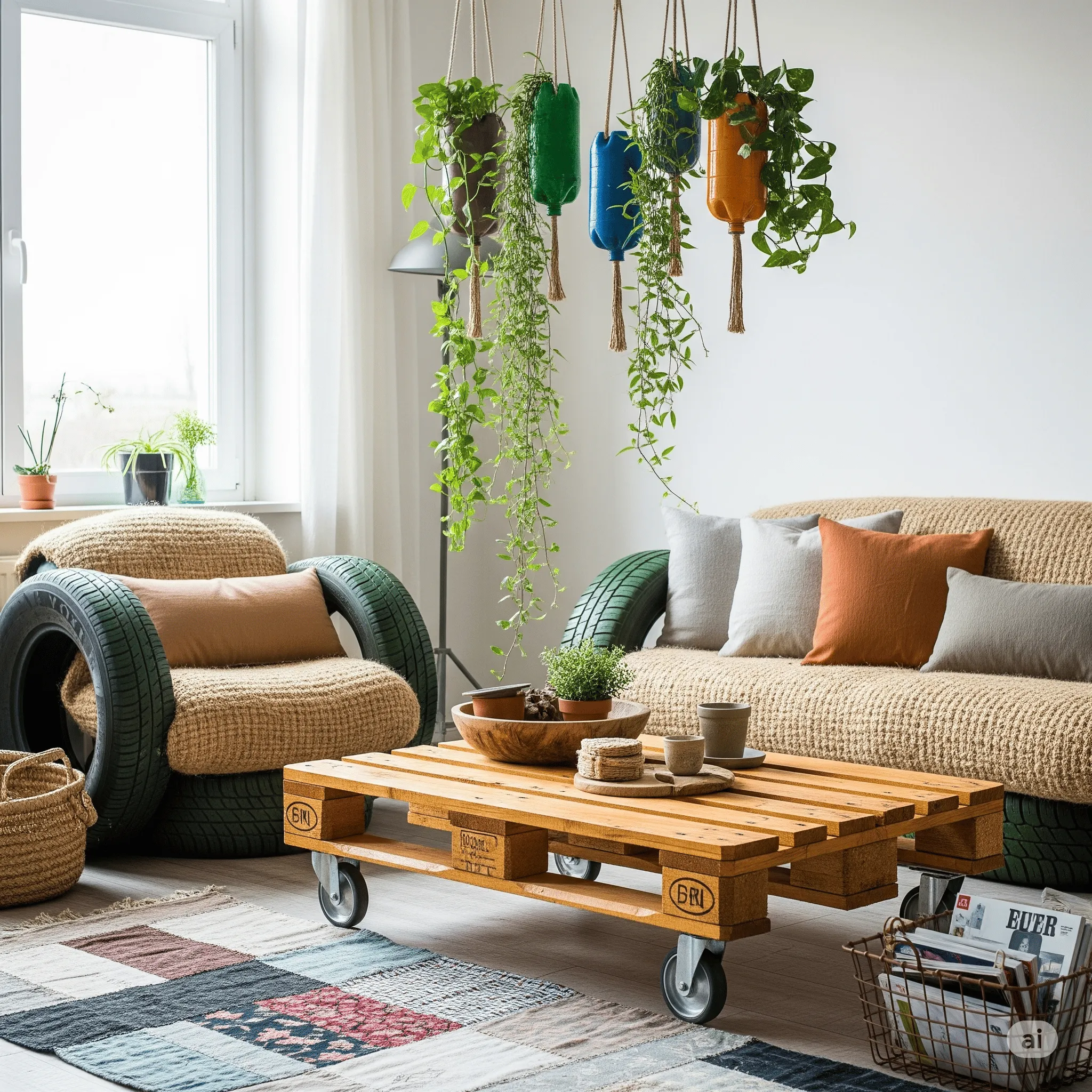 A chave para a Decoração Ecológica DIY é mudar sua perspectiva sobre o "lixo". Um pneu velho pode ser uma poltrona, uma garrafa de vidro pode ser um vaso charmoso, e uma palete de madeira pode se transformar em um jardim vertical. Comece a observar os objetos com um olhar criativo, pensando em seu potencial.